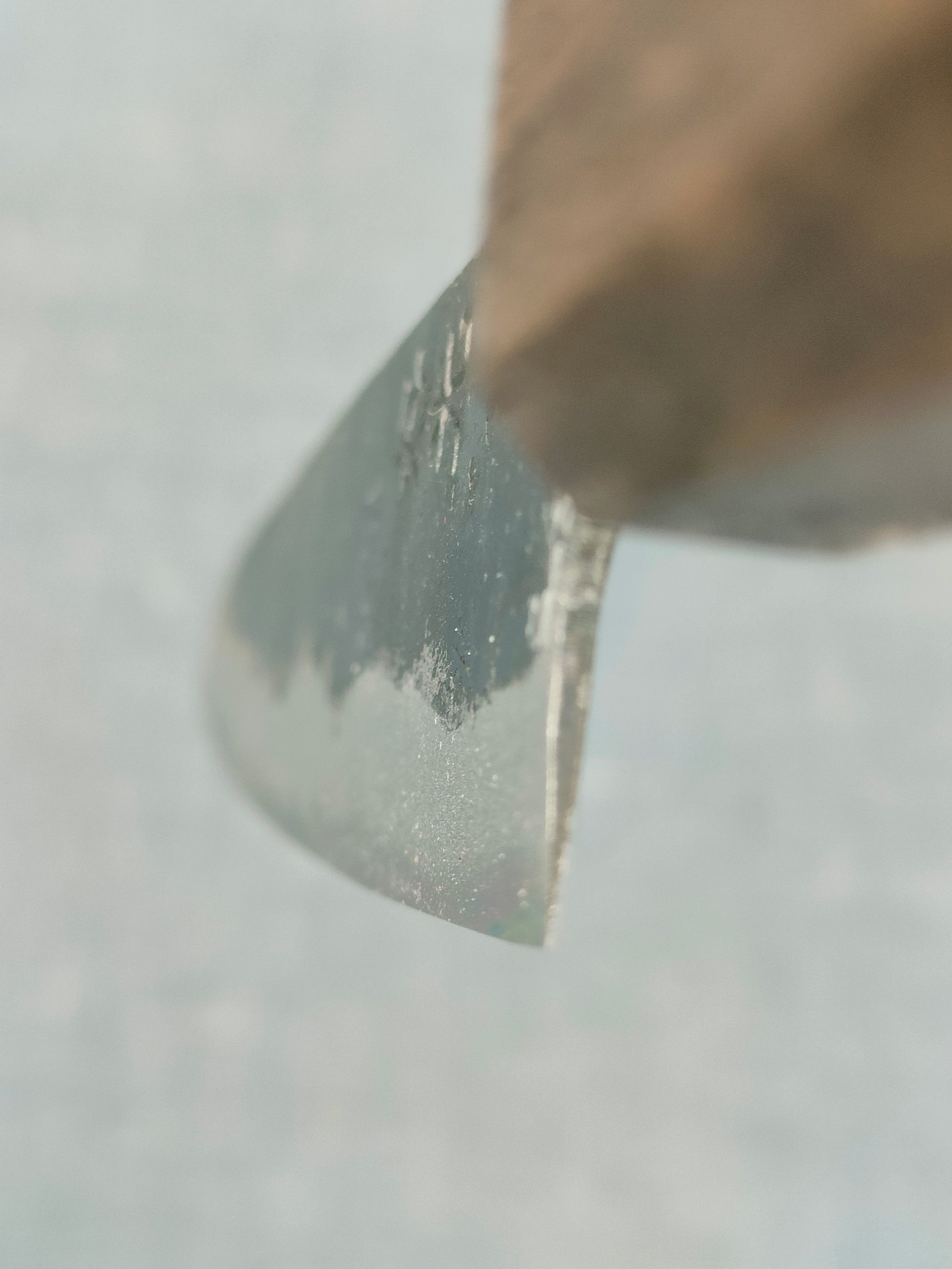 Yosimitu Kajiya is a family run Kajiya (Smithery) in the small town of Shimabara, Nagasaki Prefecture and was established in 1937. Junichi Ide is the 3rd generation blacksmith at Yosimitu Kajiya and does all stages of the blade making; free forging his blades from prewelded “Rikizai” steel and grinding the edge by hand. Yosimitu Kajiya has always specialised in kitchen knives but also makes tools for the local agricultural and fishing industies, it is a traditional family run blacksmith. Junichi Ide wants to make sharp knives for everyomne to use.